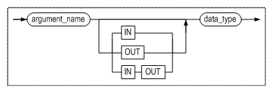 The argument can be omitted; on specification, the name, data type and input/output of the argument must be defined. Valid input/output types must be one of the following; on omission, IN is the default value.