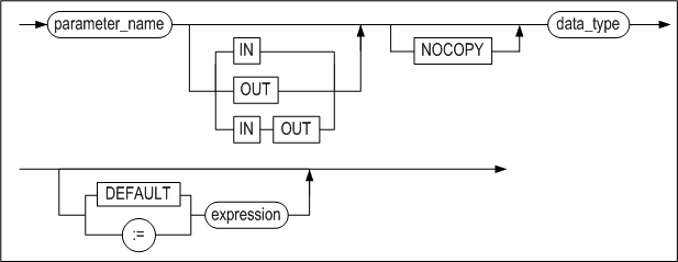If the parameter type is omitted, IN is the default type. If the parameter type is OUT or INOUT, DEFAULT expression cannot be used.