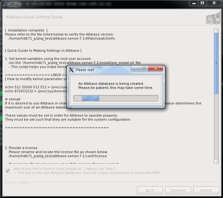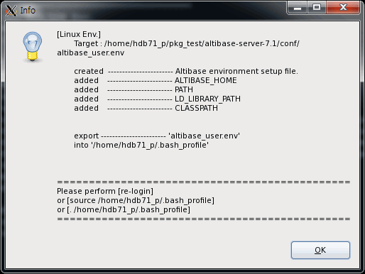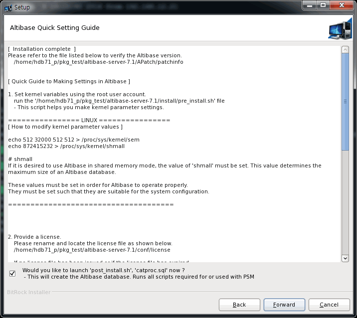 Run the '/home/hdb71_p/pkg_test/altibase-server-7.3/install/post_install.sh' file