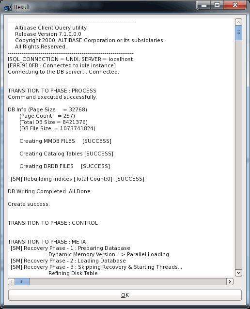이 스크립트는 Altibase 프로퍼티 설정 과정에서 단계2를 수행했다면 새로운 데이터베이스를 생성하기 위한 SQL 스크립트를 포함한다. -
