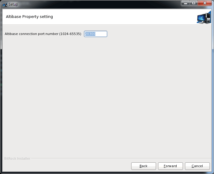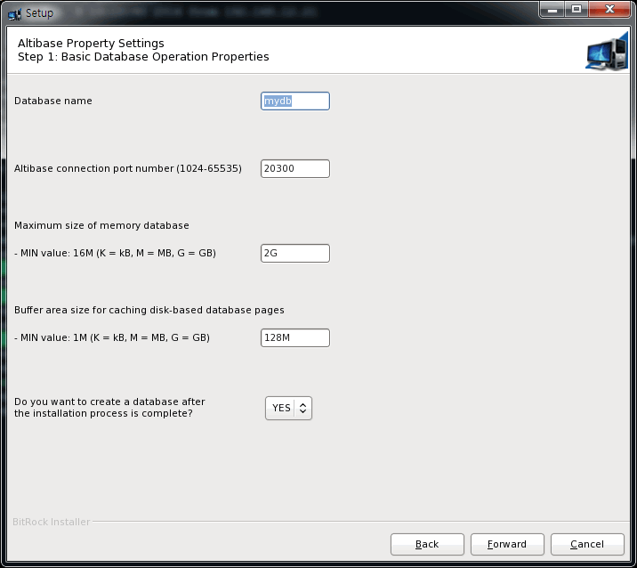 a database after installation, at "Altibase Property setting step 1",
