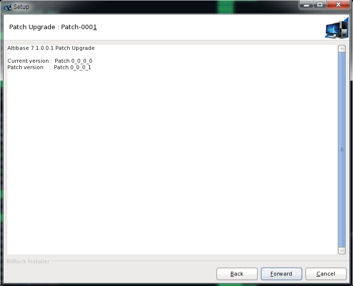 이 패널은 선택한 디렉터리에 현재 설치된 Altibase 제품의 패치 버전과 적용할 패치의 버전을 보여준다.