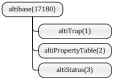 ALTIBASE-MIB는 그림과 같이 altiTrap, altiPropertyTable, altiStatus로 분류된다. 각각의 MIB는 아래의 정보를 갖고 있으며, 자세한 설명은 다른 장에서 설명한다.
