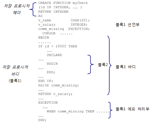 저장 프로시저 구조를 예를 들어 설명하면 다음과 같다.