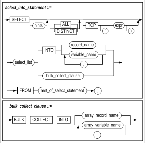 SELECT ENO, SALARY BULK COLLECT INTO emps FROM EMPLOYEES WHERE EMP_JOB = 'programmer';